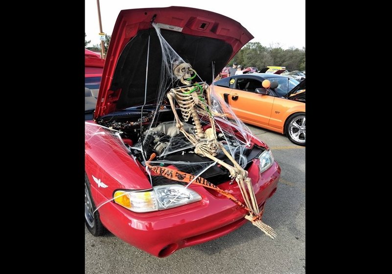Skeletons and pumpkins are not scarce, and some go the extra mile of getting a fiery exhaust to complete their prop. In addition to dressing their cars, participants dress in Halloween costumes of their choice.